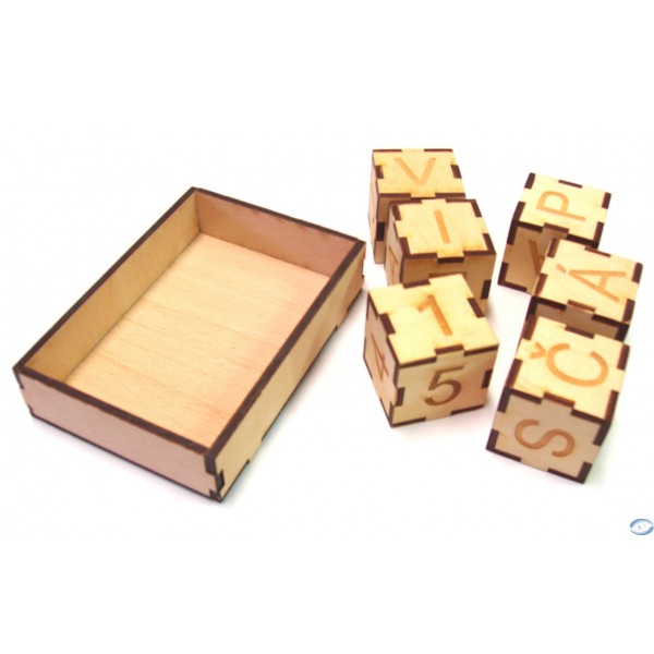 Dřevěná abeceda - kompenzační pomůcka pro děti. Formou hraní s kostičkami lze vytvářet slova a zlepšovat tak svou jemnou motoriku a mentální schopnosti.