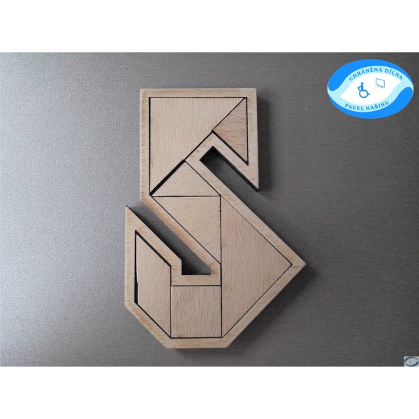 Dřevěný hlavolam, z něhož po složení vznikne písmeno S.